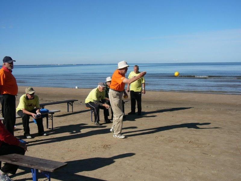 Boccia-kerhomme jäseniä kilpailemassa Virossa Suomenlahden rannalla Narva-Jõesuussa kesällä 2013